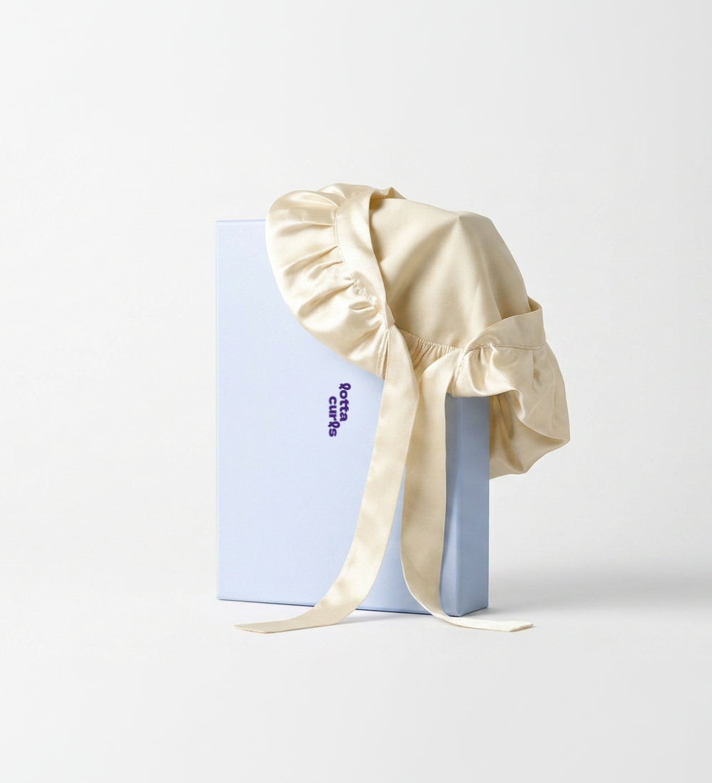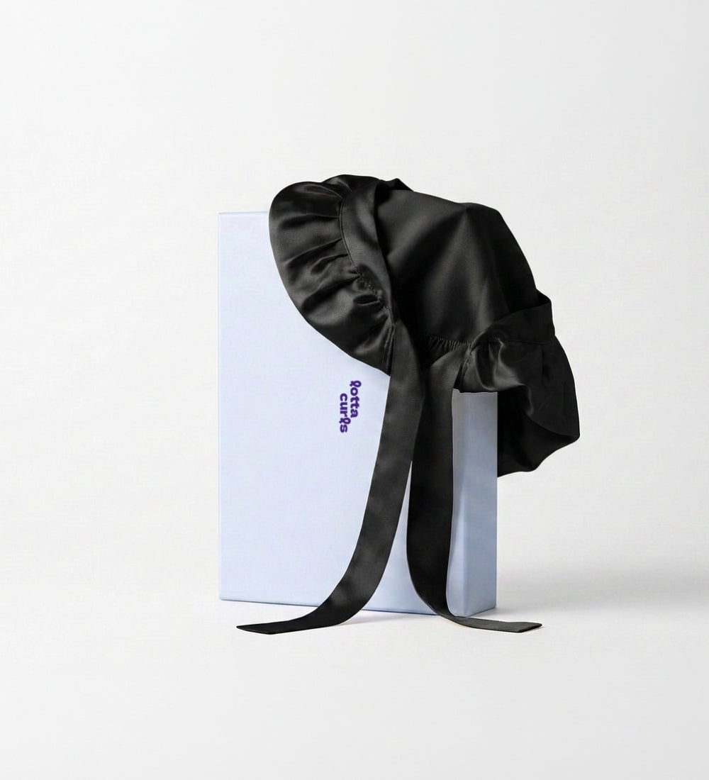 The premium silk cap protects your curls while you sleep and preserves their natural shape, moisture and softness.